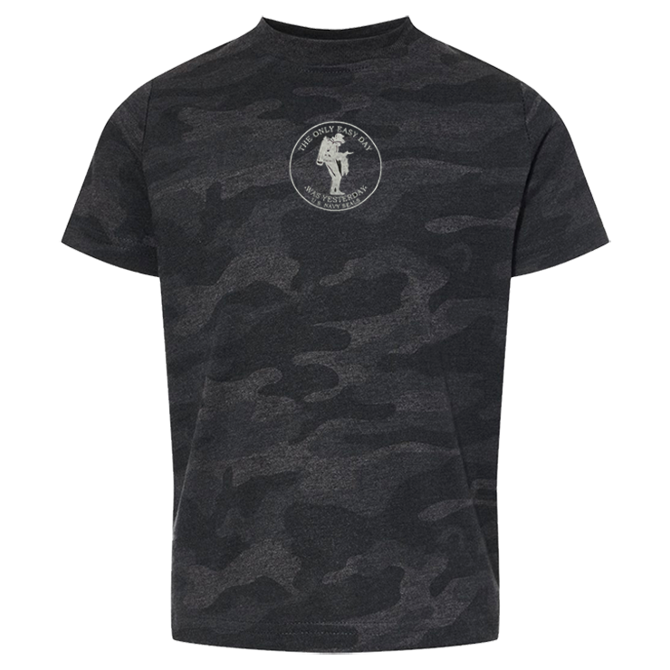 - Screenprint: The Only Easy Day Was Yesterday (Gray Imprint) Logo on the Front Middle Chest