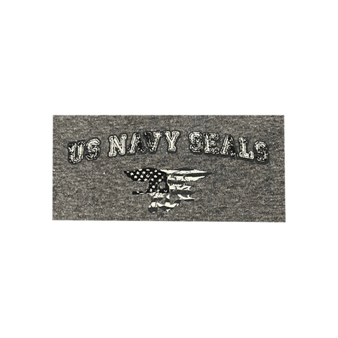 - Screenprint: Distressed US NAVY SEALS above Trident Flag with Black/White/Gray Colors on Center Chest